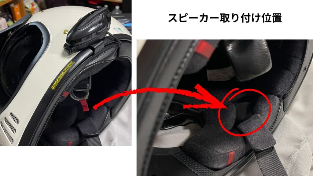 僕のヘルメットSHOEI EX-Zeroには、スピーカーがキレイに収まる