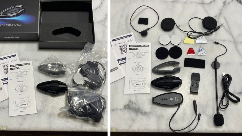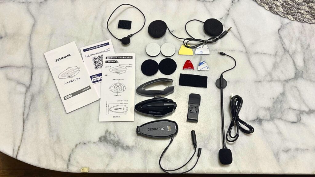 また、フルフェイスとジェットヘルメットの両方に対応する2種類のマイクが入っており、インカムを「初めて使う」初心者でも、追加で何かを買い足す必要はありません。
